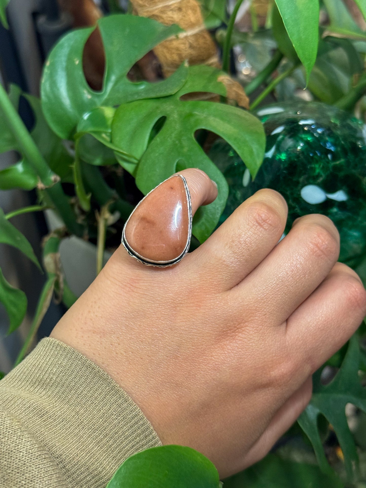 This stunning ring features a vibrant orange adventurine stone set in a size 6 band. With its healing properties and unique coloration, this ring is the perfect accessory for any outfit. Enhance your sense of well-being while making a bold fashion statement.